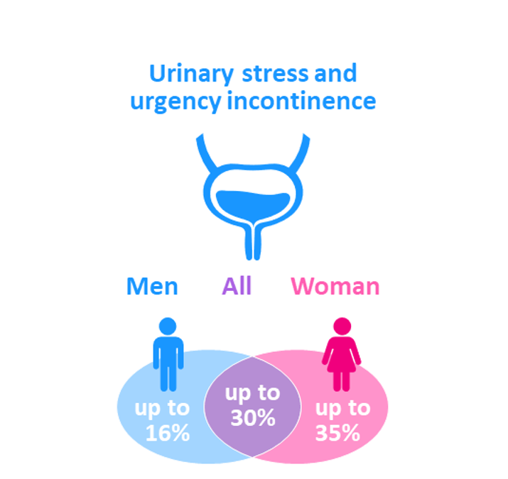 Poiché i sintomi e le condizioni della disfunzione del pavimento pelvico sono ampi, è difficile determinare l'incidenza complessiva. Tuttavia, è chiaro che è molto comune per le donne ed è persino considerato un problema di salute pubblica. Ma non solo le donne sono colpite, lo stress urinario e i disturbi dell'incontinenza da urgenza sono stati segnalati per colpire il 35% delle donne e il 16% degli uomini.